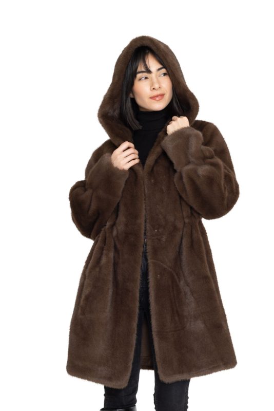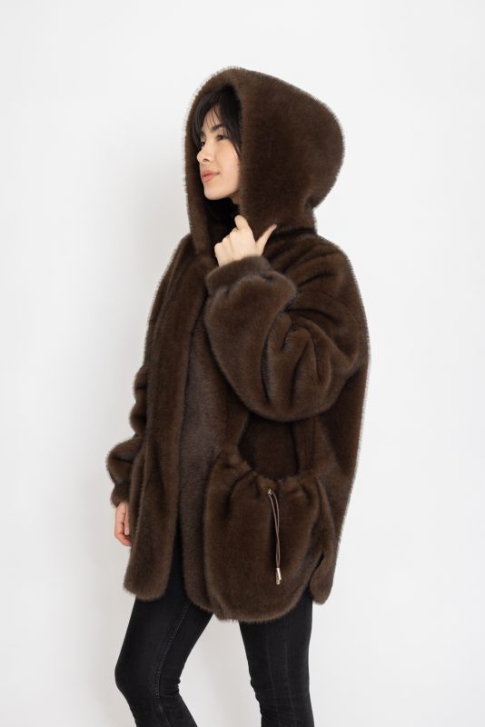 Manteau en effet fourrure à capuche Royal Mocha marron