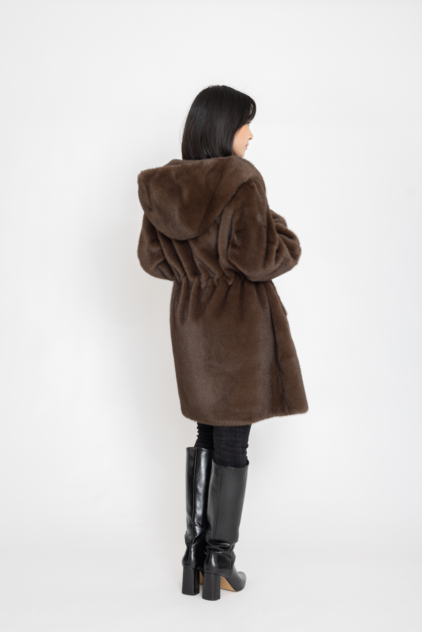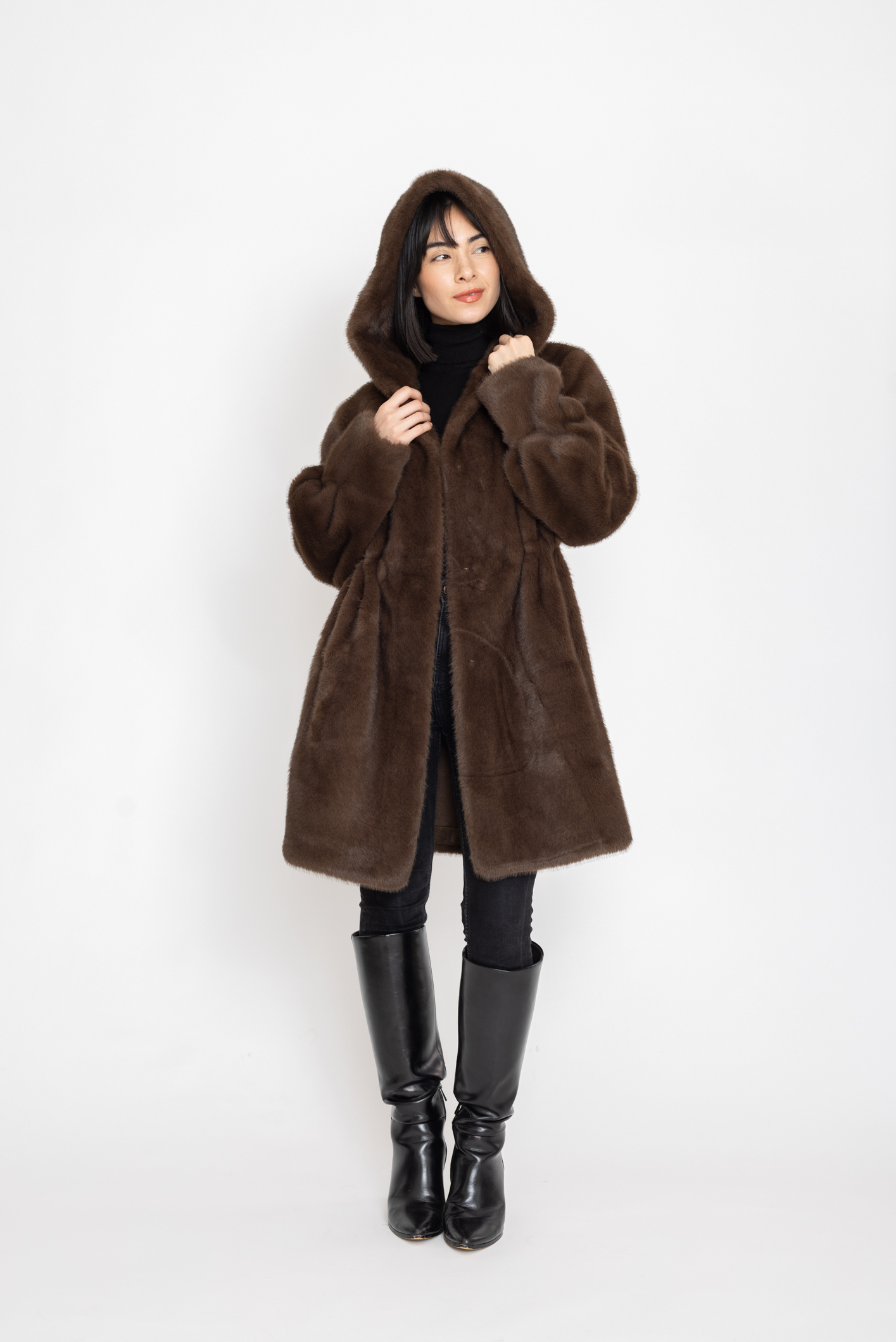 Manteau en effet fourrure à capuche Lune Polaire marron